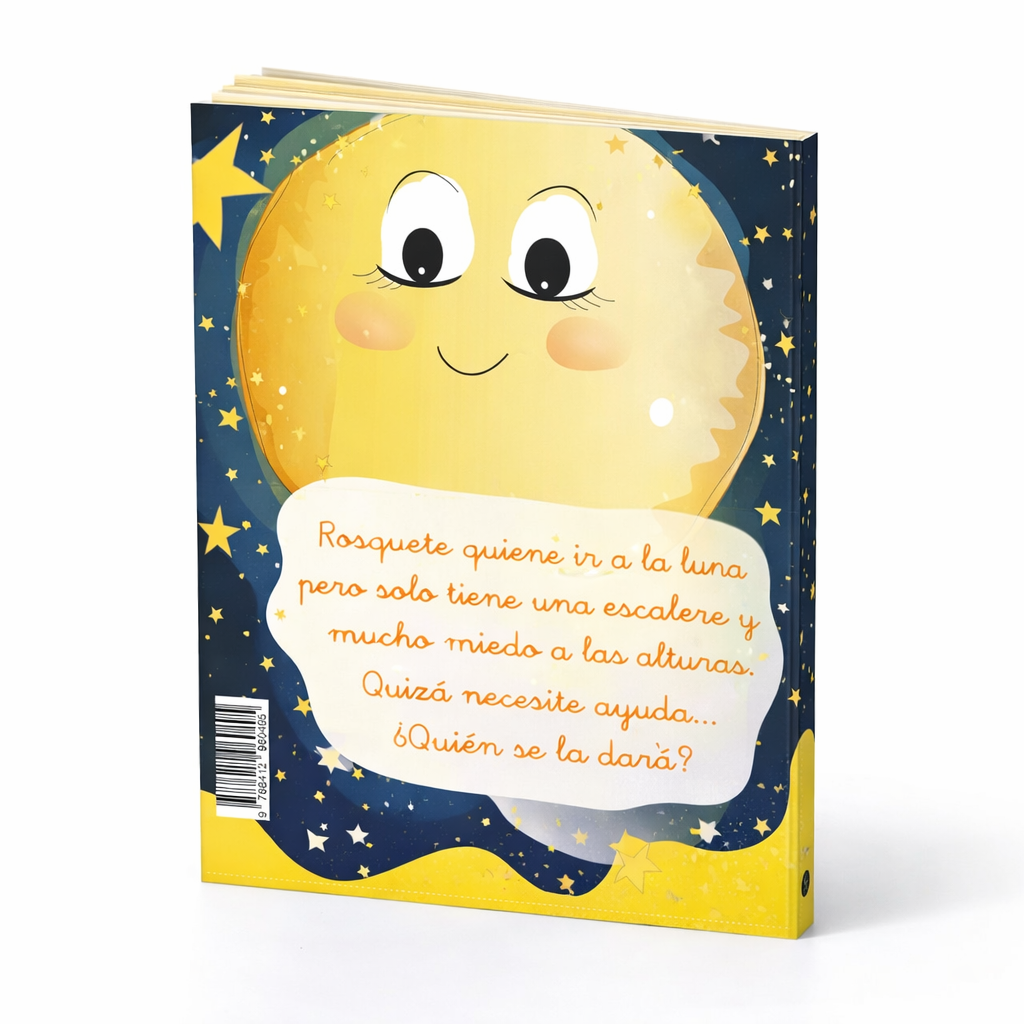 Rosquete quiere ir a la luna pero solo tiene una escalera y mucho miedo a las alturas. Quizás necesite ayuda… ¿Quién se la dará?